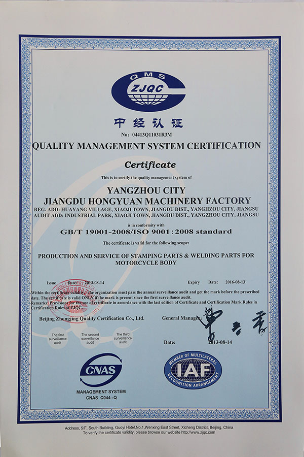 質(zhì)量體系認(rèn)證證書(shū)